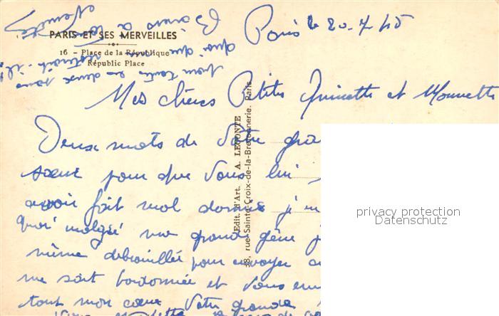 13522699 Paris Place de la République Monument postalisch nicht gelaufen Erhaltung siehe scans [FriedD77] KatCode: 11170075175056