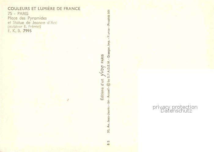 12761274 Paris Place des Pyramides et Statue de Jeanne d_Arc KatCode 11170075175056