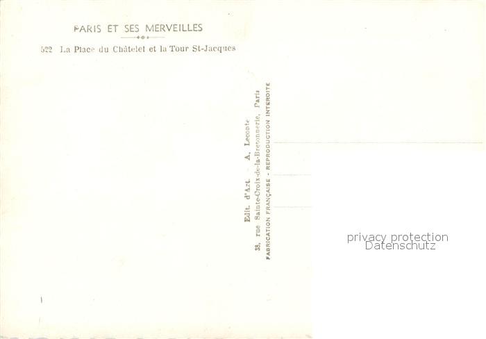 13591127 Paris Place du Chatelet et la Tour St-Jacques postalisch nicht gelaufen Erhaltung siehe scans [LiesaD40] Lies Katcode 11170075175056