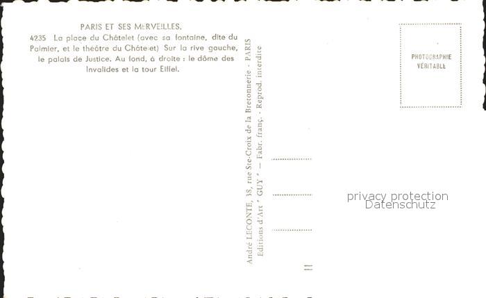 12306169 Paris Place du Chatelet et Palais de Justice et Tour Eiffel postalisch nicht gelaufen Erhaltung siehe scans KatCode: 11170075175056