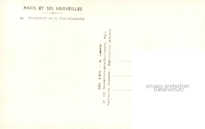 13539155 Paris Pont Alexandre postalisch nicht gelaufen Erhaltung siehe scans [PaolaD17] KatCode: 11170075175056