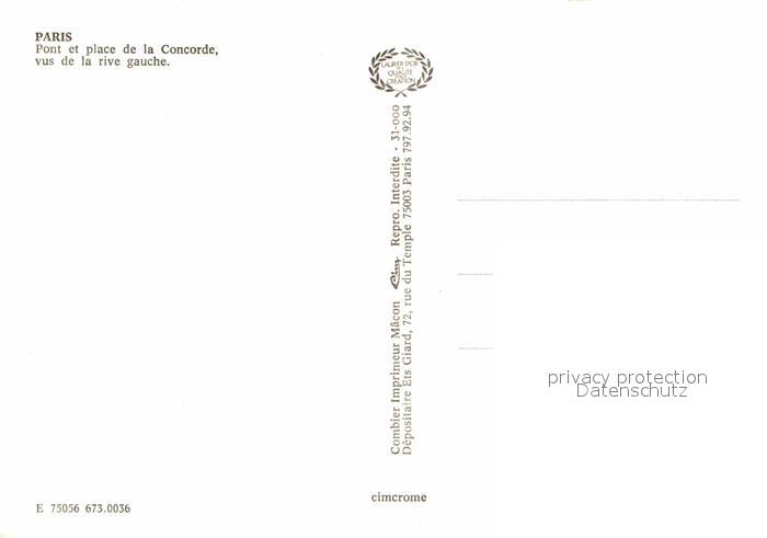 12687937 Paris Pont et place de la Concorde postalisch nicht gelaufen Erhaltung siehe scans [NatalD47] KatCode: 11170075175056