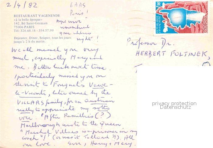 12904419 carte postale Paris Restaurant Vagenende postalisch gelaufen Erhaltung siehe scans [LiesaD40] KatCode: 11170075175056