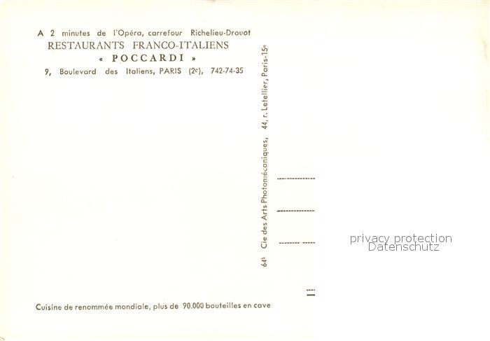 13218375 Paris Restaurants Franco Italiens Poccardi Bar Grill Room Salle Capri postalisch nicht gelaufen Erhaltung siehe scans [FriedD77] KatCode: 11170075175056