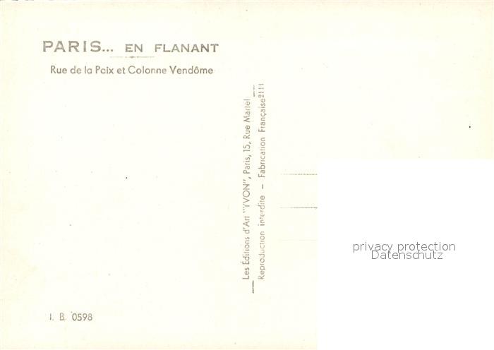 13038052 Paris Rue de la Paix Colonne Vendome postalisch nicht gelaufen Erhaltung siehe scans [KathaD81] KatCode: 11170075175056