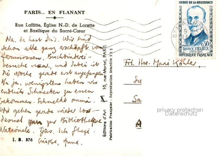 13021374 carte postale Paris Rue Laffitte Eglise N-D de Lorette Basilique du Sacre-Coeur postalisch gelaufen Erhaltung siehe scans [NatalD47] KatCode: 11170075175056