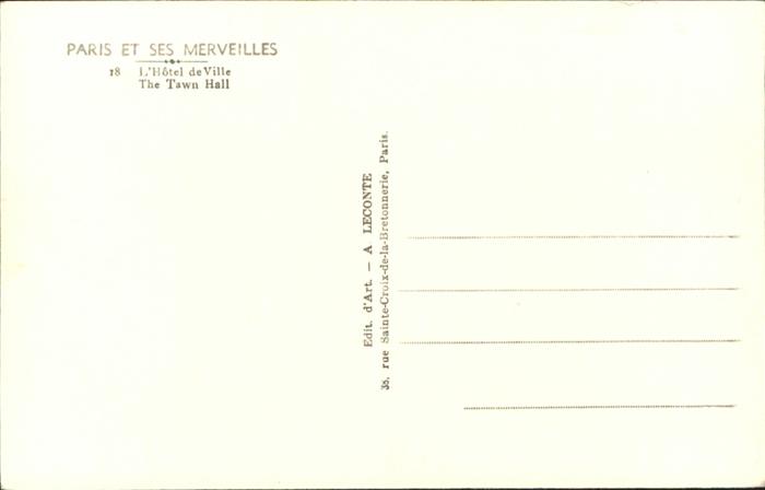 Paris Ses Merveilles Hotel de Ville Tawn Hall