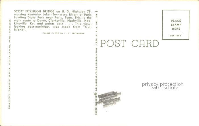 72444367 Paris Tennessee Scott Fitzhugh Bridge Kentucky Lake postalisch nicht gelaufen Erhaltung siehe scans KatCode: 14140450000000