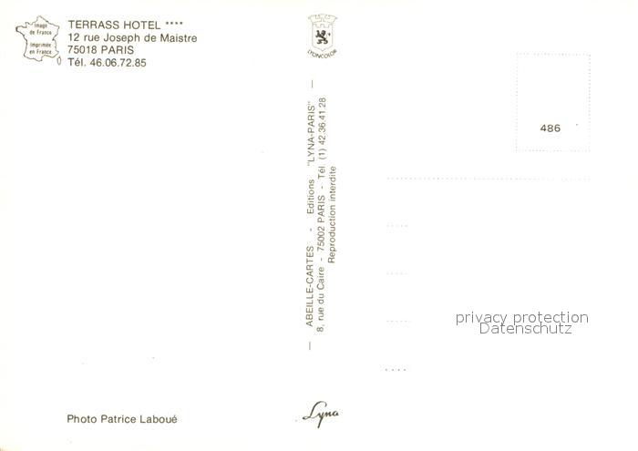 13530092 Paris Terrass Hotel Rue Joseph de Maistre postalisch nicht gelaufen Erhaltung siehe scans [WerneD78] KatCode: 11170075175056