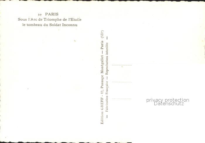 12312945 Paris Tombeau du Soldat Inconnu sous l’Arc de Triomphe de l’Etoile postalisch nicht gelaufen Erhaltung siehe scans KatCode: 11170075175056