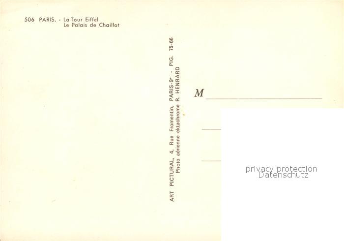 13021432 Paris Tour Eiffel Palais Chaillot postalisch nicht gelaufen Erhaltung siehe scans [NatalD47] KatCode: 11170075175056
