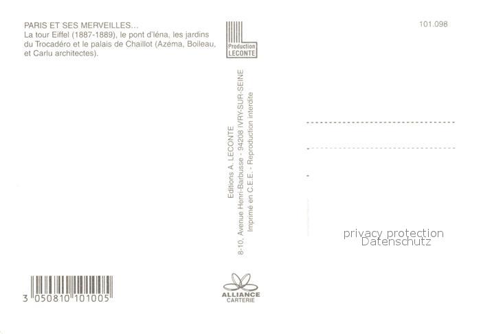 13590445 Paris Tour Eiffel Pont d léna Jardins du Trocadéro Palais de Chaillot vue aérienne postalisch nicht gelaufen Erhaltung siehe scans [FriedD77] Frie Katcode 11170075175056