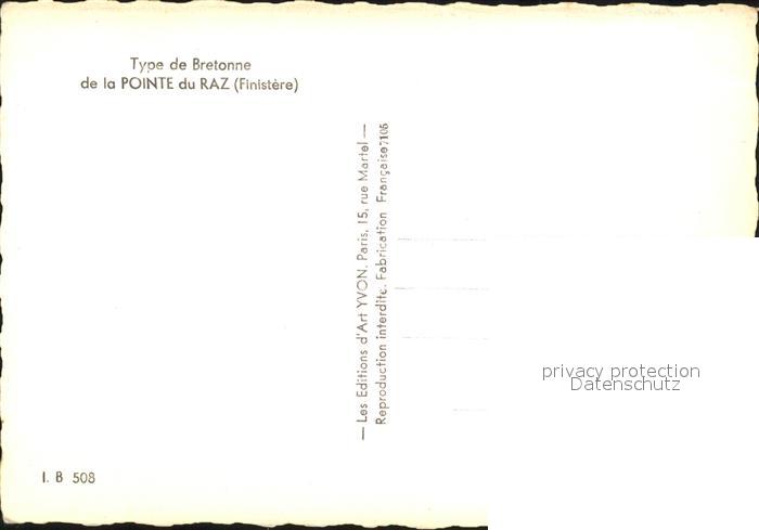 11902124 Paris Type de Bretone de la Pointe du RAZ postalisch nicht gelaufen Erhaltung siehe scans KatCode: 11170075175056
