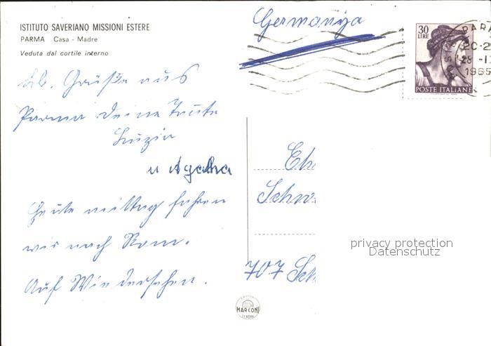 old postcard Parma Emilia-Romagna Instituto Saveriano Missioni Estere postalisch gelaufen Erhaltung siehe scans