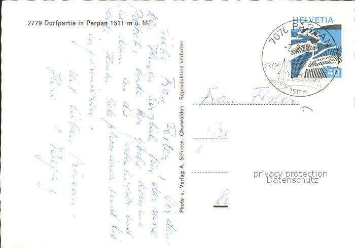 11649842 alte Postkarte Parpan Dortpartie postalisch gelaufen Erhaltung siehe scans KatCode: 11470100345326