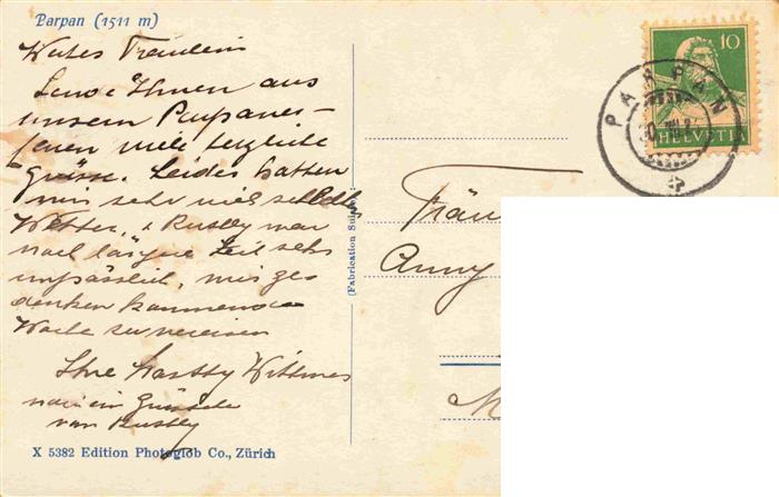 13974518 alte Postkarte Parpan GR Panorama postalisch gelaufen Erhaltung siehe scans [FriedD77] KatCode: 11470100345326