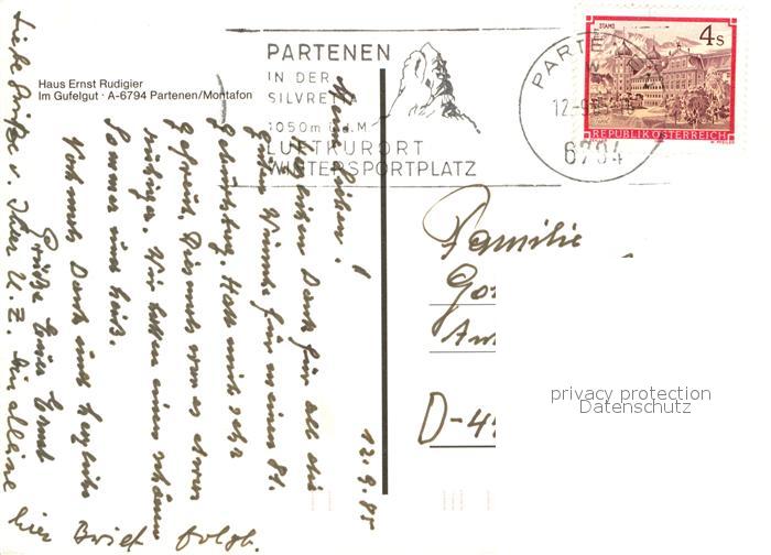 13011042 alte Postkarte Partenen Vorarlberg Haus Ernst Rudigier postalisch gelaufen Erhaltung siehe scans [NatalD47] KatCode: 11390341080110