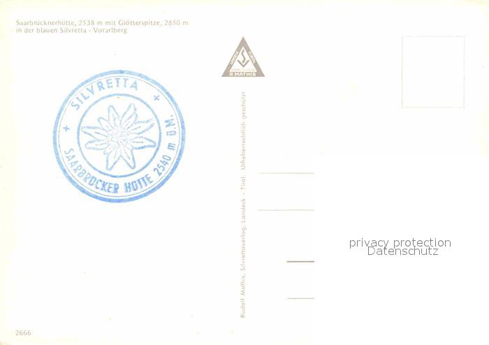 72677623 Partenen Vorarlberg Saarbruecknerhuette mit Gloetterspitze in der blauen Silvretta Vorarlberg postalisch nicht gelaufen Erhaltung siehe scans [FriedD77] KatCode: 11390341080110