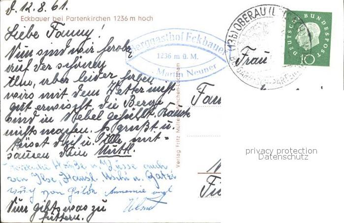 72291485 alte Postkarte Partenkirchen Eckbauer postalisch gelaufen Erhaltung siehe scans KatCode: 11110009180117