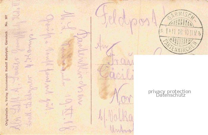 74081995 alte Postkarte Partenkirchen GARMISCH-PARTENKIRCHEN mit Zugspitze und Tirolerberge Feldpost postalisch gelaufen Erhaltung siehe scans [WerneD78] KatCode: 11110009180117