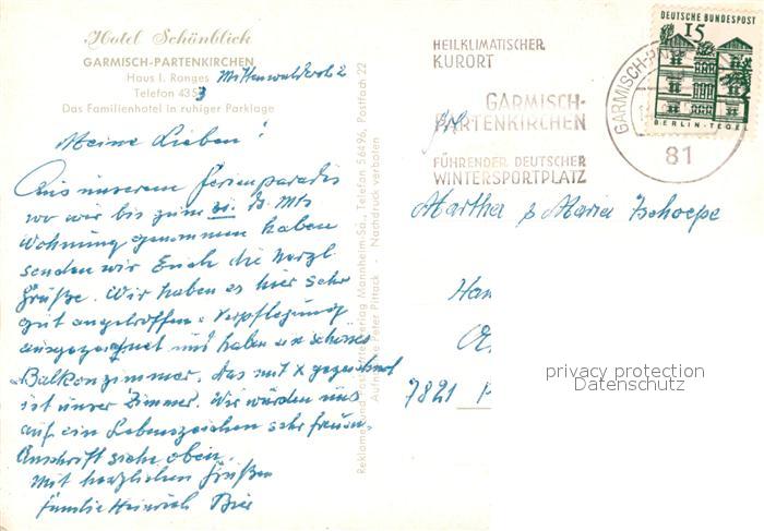 73542952 alte Postkarte Partenkirchen Kurhotel Schoenblick Park postalisch gelaufen Erhaltung siehe scans [FriedD77] KatCode: 11110009180117