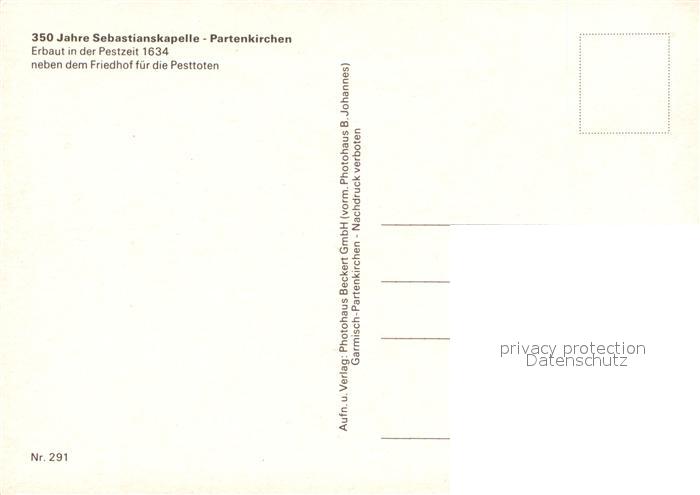 73197862 Partenkirchen Sebastianskapelle postalisch nicht gelaufen Erhaltung siehe scans [WerneD78] KatCode: 11110009180117