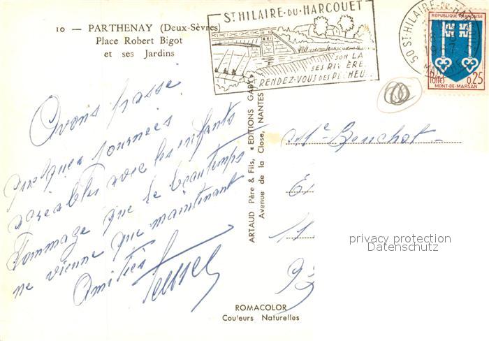 13273634 carte postale Parthenay Place Robert Bigot postalisch gelaufen Erhaltung siehe scans [NatalD47] KatCode: 11170079379202