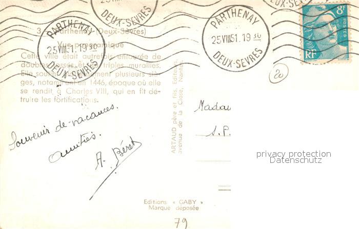 13485119 carte postale Parthenay Vue panoramique postalisch gelaufen Erhaltung siehe scans [FriedD77] KatCode: 11170079379202
