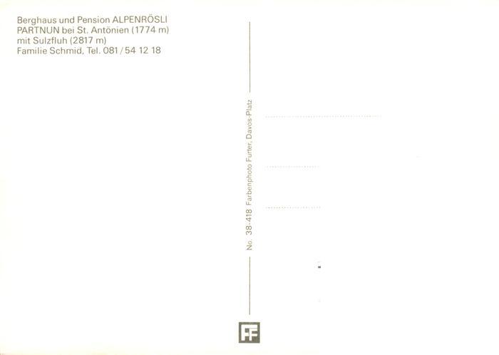 13918274 Partnun St Antoenien GR Burghaus Pension Alpenroesli mit Sulzfluh postalisch nicht gelaufen Erhaltung siehe scans [FriedD77] KatCode: 11470100350410