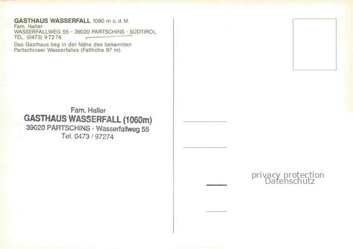 74110970 Partschins Parcines Bolzano IT Gasthaus Wasserfall Gaststube Terrasse Panorama postalisch nicht gelaufen Erhaltung siehe scans [WerneD78] KatCode: 11240