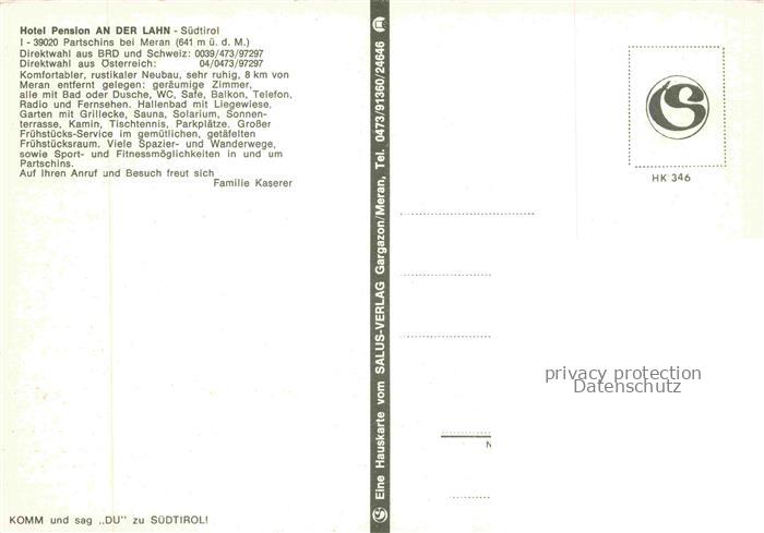 74085086 Partschins Parcines Bolzano IT Hotel Pension an der Lahn Panorama postalisch nicht gelaufen Erhaltung siehe scans [WerneD78] KatCode: 11240