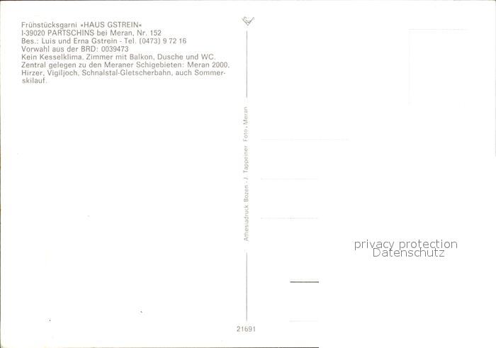Partschins Parcines Fruehstueckspension Haus Gstrein postalisch nicht gelaufen Erhaltung siehe scans