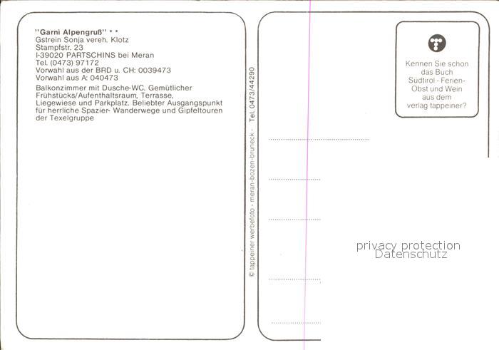 Partschins Parcines Garni Alpengruss postalisch nicht gelaufen Erhaltung siehe scans [KathaD79]