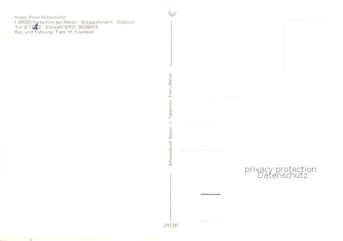 Partschins Parcines IT Hotel Peter Mitterhofer Hallenbad Panorama postalisch nicht gelaufen Erhaltung siehe scans [WerneD78]