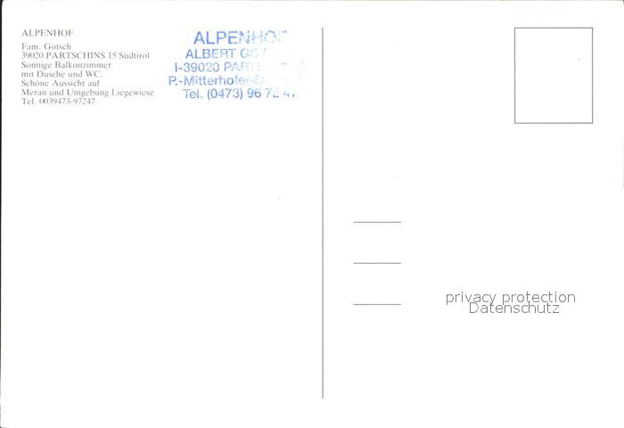 Partschins Parcines Panorama Garni Alpenhof Partschins postalisch nicht gelaufen Erhaltung siehe scans
