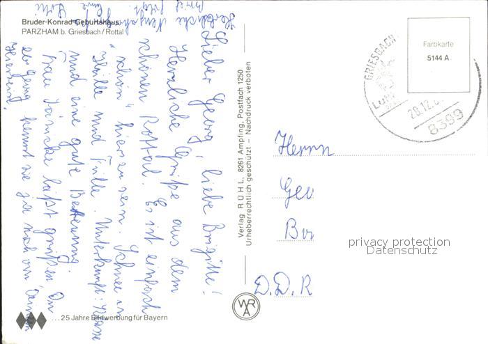 72464945 alte Postkarte Parzham Niederbayern bei Griesbach Bruder-Konrad-Geburtshaus postalisch gelaufen Erhaltung siehe scans KatCode: 11110009275122