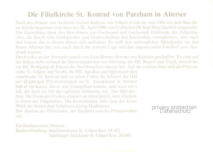 73355307 Parzham Niederbayern Filialkirche St Konrad postalisch nicht gelaufen Werbekarte (keine Postkarte) Erhaltung siehe scans [WerneD78] KatCode: 11110009275122