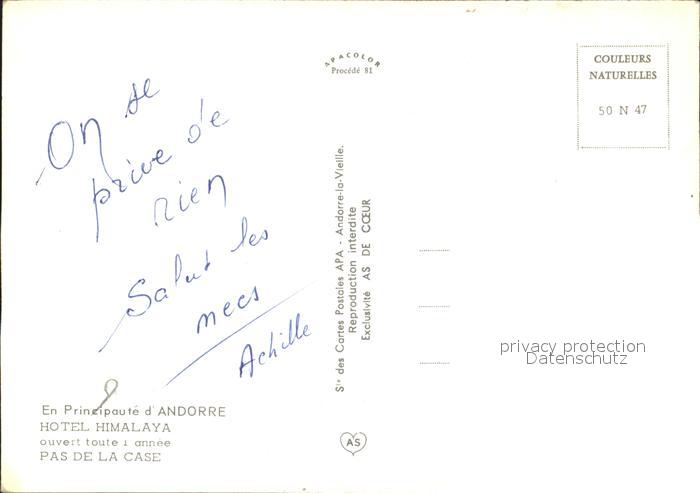 Pas de la Casa Hotel Himalaya postalisch nicht gelaufen Erhaltung siehe scans