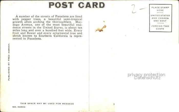 11688385 Pasadena California Avenue with Pepper Trees Allee postalisch nicht gelaufen Erhaltung siehe scans KatCode: 14140050000000