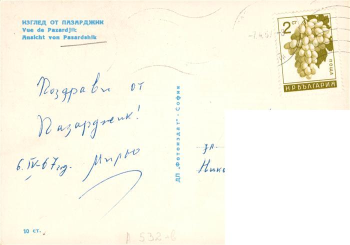 old postcard Pasardschik Pazardjik BG Teilansicht postalisch gelaufen Fliegeraufnahme Erhaltung siehe scans [FriedD77]