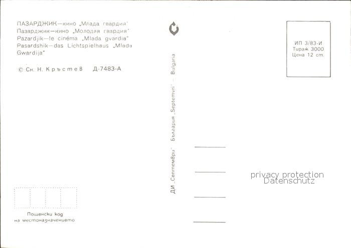 Pasardschik Pazardjik Lichspielhaus Mlada Gwardija postalisch nicht gelaufen Erhaltung siehe scans