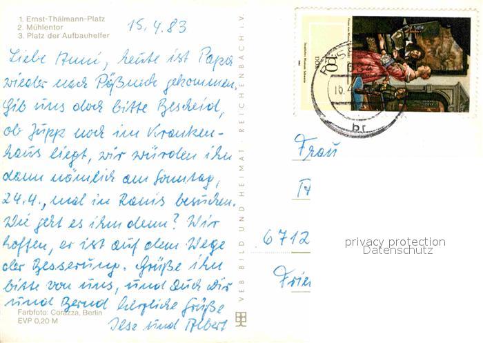 72916380 alte Postkarte Pasewalk Mecklenburg Vorpommern Ernst-Thaelmann-Platz Muehlentor Platz der Aufbauhelfer postalisch gelaufen Erhaltung siehe scans [LiesaD40] KatCode: 11110013062043
