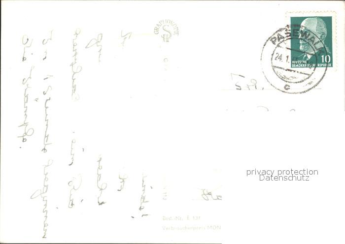 72357854 alte Postkarte Pasewalk Mecklenburg Vorpommern Prenzlauer Tor Rat des Kreises Pulverturm HOG Bahnhofshotel Kinderkrippe postalisch gelaufen Erhaltung siehe scans KatCode: 11110013062043