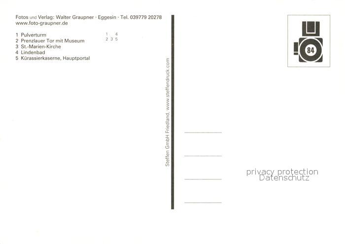 73269277 Pasewalk Mecklenburg Vorpommern Pulverturm Prenzlauer Tor Museum Kirche Freibad Kaserne postalisch nicht gelaufen Erhaltung siehe scans [FriedD77] KatCode: 11110013062043