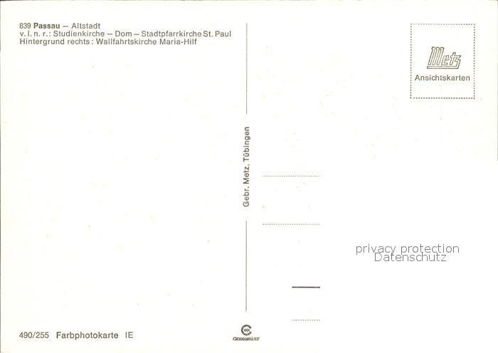 72462268 PAssAU Bayern Altstadt Studienkirche Dom Stadtpfarrkirche St Paul Wallfahrtskirche Maria Hilf postalisch nicht gelaufen Erhaltung siehe scans KatCode: 11110009262000