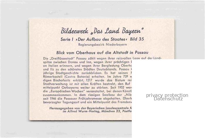 74112703 PAssAU Bayern Blick vom Oberhaus auf die Altstadt Sammelbild 7×10 cm postalisch nicht gelaufen Werbekarte (keine Postkarte) Erhaltung siehe scans [WerneD78] Werbekarte (keine Postkarte) Wern Katcode 11110009262000