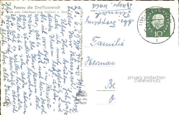 72600734 alte Postkarte PAssAU Bayern Blick vom Oberhaus zum Rathaus und Dom Dreifluessestadt postalisch gelaufen Erhaltung siehe scans [LiesaD40] KatCode: 11110009262000