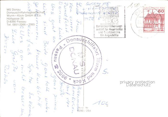 72051721 alte Postkarte PAssAU Bayern Dampfer MS Donau Donauschiffahrtsgesellschaft postalisch gelaufen Erhaltung siehe scans KatCode: 11110009262000