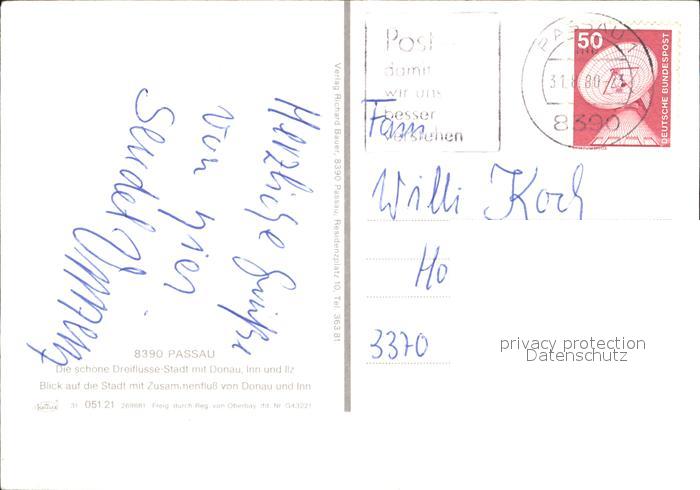 72289584 alte Postkarte PAssAU Bayern Donau Inn Fliegeraufnahme postalisch gelaufen Erhaltung siehe scans KatCode: 11110009262000