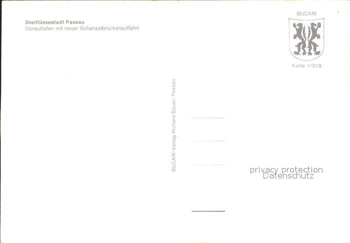 72053862 PAssAU Bayern Donauhafen mit neuer Schanzelbrueckenauffahrt Dreifuessestadt Frachtkahn postalisch nicht gelaufen Erhaltung siehe scans KatCode: 11110009262000